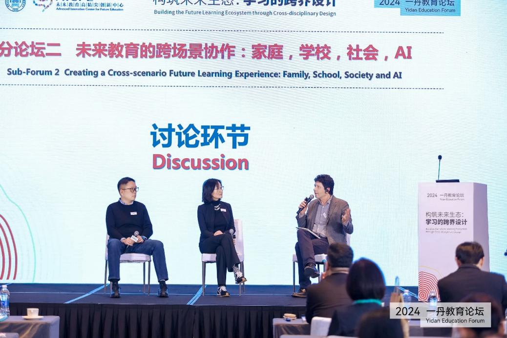 in the era of artificial intelligence, how families, schools and society realize cross-scene collaboration (from left to right): cao ying, head of industry exploration group of tencent social value exploration center of tencent interactive entertainment, tong yuzhou, director of global interactive learning department of school of design and creativity, tongji university, and mike petrich, director of informal learning center of exploratorium exploration museum (us)