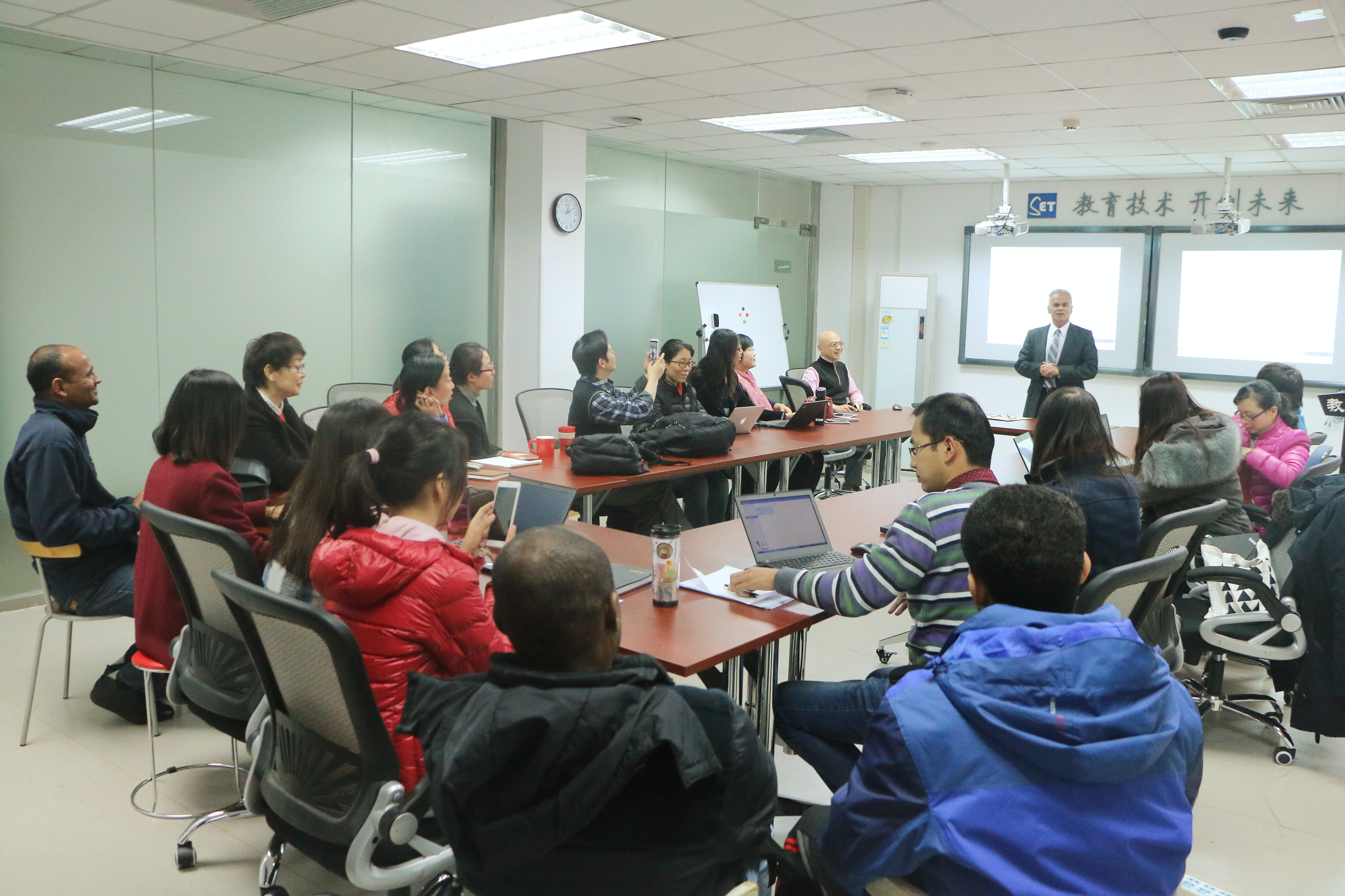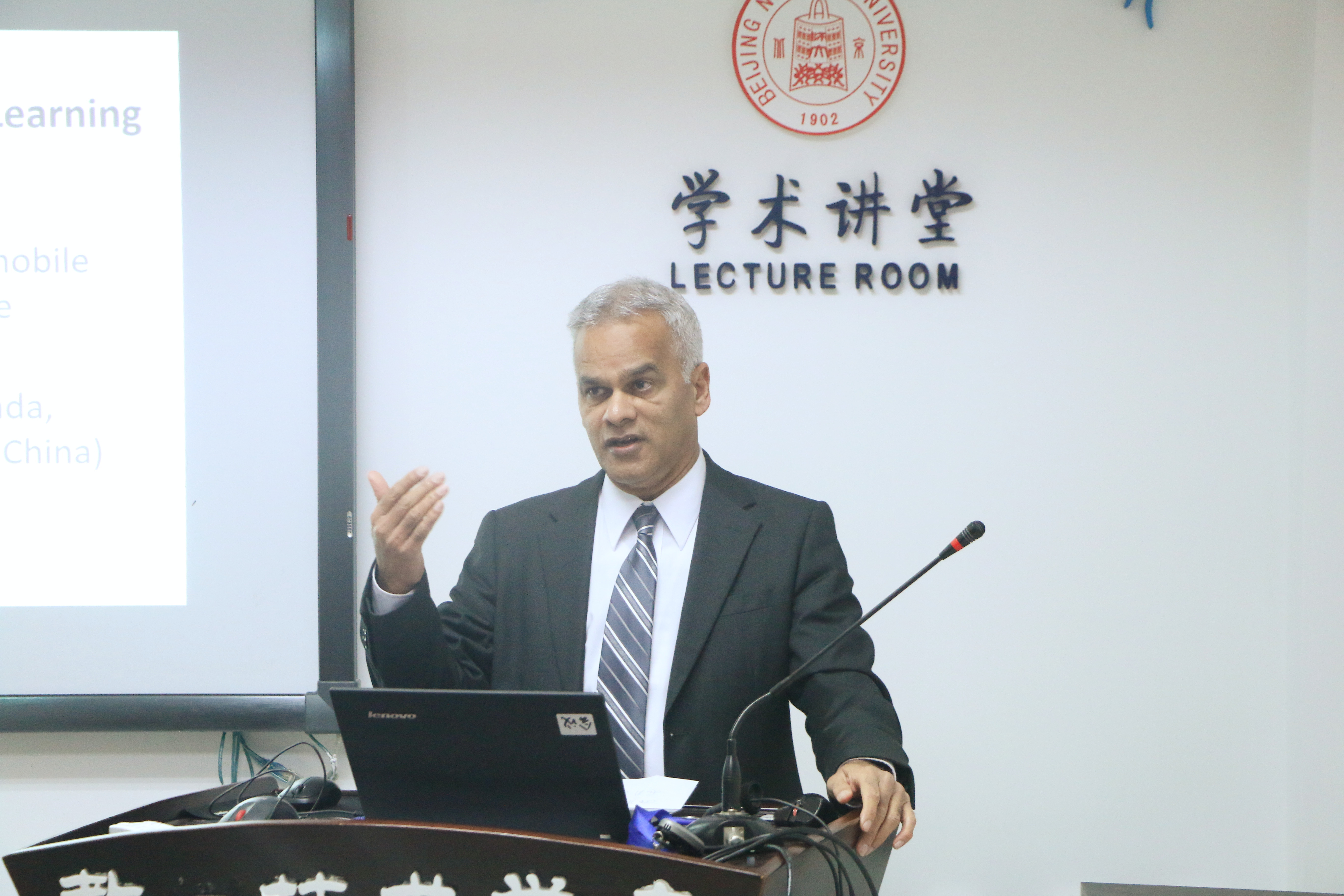 professor mohamed ally from centre for distance education and researcher in the technology enhanced knowledge research institute (tekri) at athabasca university, canada delivered a lecture titled emerging technologies and innovative pedagogies: impact on the future education from 2:00 to 3:30 pm on november 10, 2016 in the room 208, school of educational technology, beijing normal university (bnu). professor ally is also a committee member in advisory board at beijing advanced innovation center for future education (aicfe). this lecture was organized by aicfe and was intended to provide a comprehensive overview of new technologies and pedagogies. the lecture attracted more around 30 audience, including graduate students, international students, researchers and professors at bnu. professor ally was very considerate for audience. since most of them are english language learners, he put lots of content on powerpoint as a facilitation and he emphasized books that have chinese version.