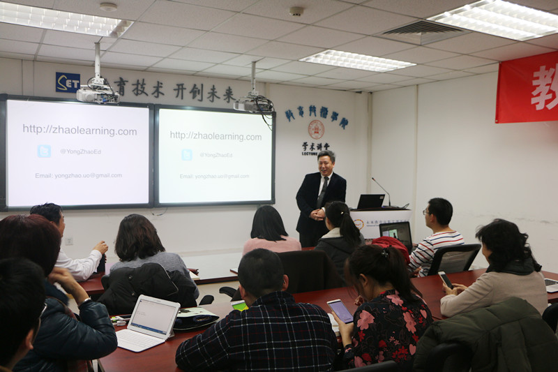 on january 13, 2017, professor yong zhao visited advanced innovation center for future education (aicfe) at beijing normal university. he is a foundation distinguished professor in the school of education at the university of kansas. he is also a professional fellow at the mitchell institute for health and education policy, victoria university in australia. in addition, he is an elected fellow of the international academy for education and has ranked as the top 10 education scholars in public influence in the u.s. in the morning, professor zhao had an academic exchange meeting with directors and staff at aicfe. in the afternoon, professor zhao delivered a lecture on an education paradigm shift: why and how, which attracts around 60 audience offline and more than 400 audience online.