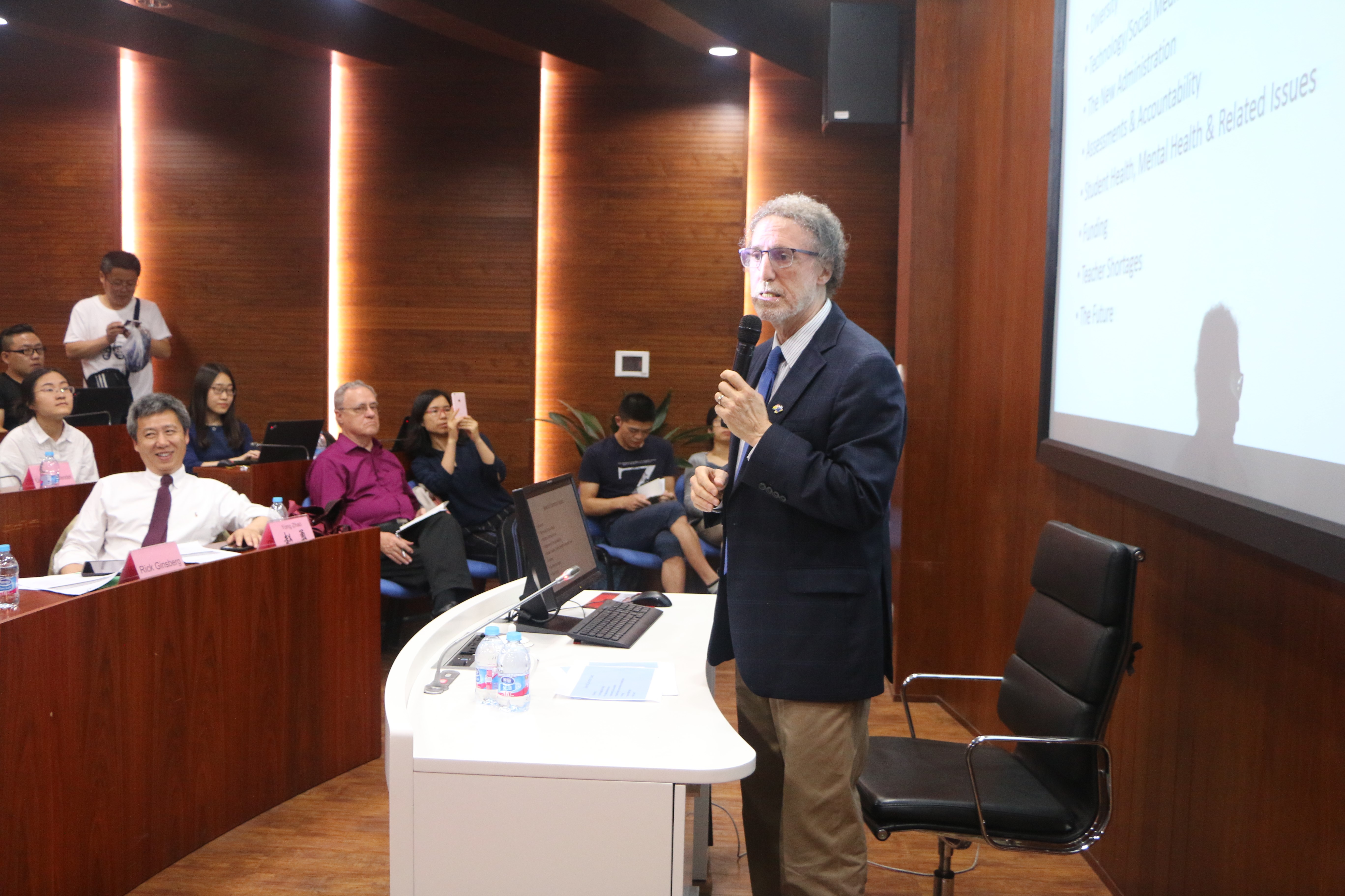 prof. xudong zhu, dean of the faculty of education pointed out that it is an honor to meet with prof. rick ginsberg. he hoped the seminars and meetings could promote the cooperation among ku, the faculty of education, and aicfe.
