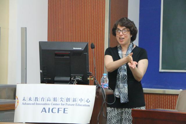in the morning of may 24, dr. maggie minhong wang shared the speech entitled laboratory for knowledge management & e-learning (km&el lab): review of ten years and prospect of development. similar to aicfe, km&el lab aims to use technology to improve individual and organizational learning for sustainable development. technology has showed advantages in convenience, flexibility, autonomy, opportunities, and facilities in teaching and learning, but challenges coming with advantages. for example, complex process is inaccessible to learners, undesired learning outcomes, anxiety, and low confidence in inquiry and problem contexts in computer-based learning environments. from prior studies, dr. wang found that deep or deeper learning is characterized by high level of engagement in learning, driven by intrinsic motivation, supported by relevant learning approaches or strategies that allow learners to manage complexity and key challenges to sustain engagement and to achieve a high level of understanding and performance. designers of online environment and course should pay more attention to externalizing the tacit aspects of complex tasks for effective thinking and improved performance, to relating new ideas with prior knowledge and experience for effective construction of knowledge, combining discrete pieces of knowledge into a coherent whole, and converging and evolving knowledge in social contexts.