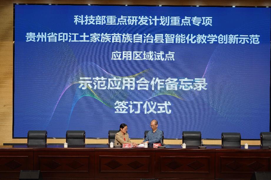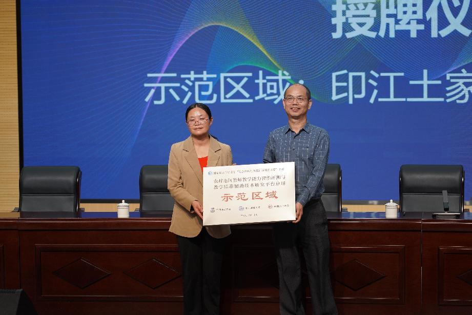 at the awarding ceremony, huang ziqian, the representative of the general project team and the associate professor of south china normal university, signed a contract with deng heping, the deputy director of the education bureau of yinjiang tujia and miao autonomous county, and awarded the "demonstration area" plaque to the county.