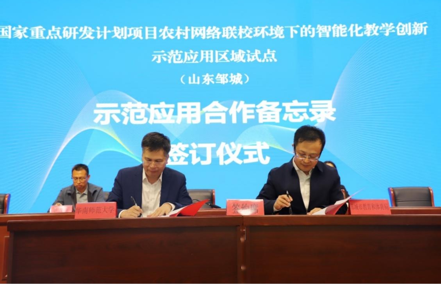 subsequently, professor ke qingzhao from south china normal university and li yue, deputy director of zoucheng education and sports bureau, signed the cooperation memorandum agreement of "demonstration application of intelligent teaching innovation in the rural network joint school environment", as a new starting point for cooperation between all parties.