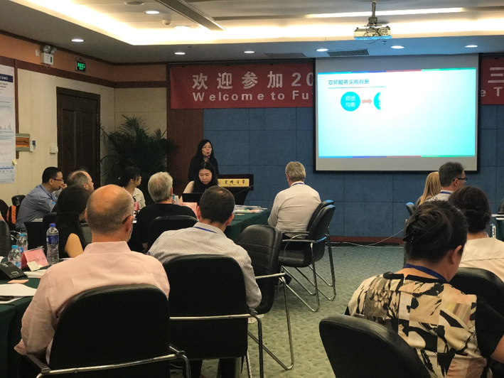 2017年5月25日下午北京师范大学未来教育高精尖创新中心融合应用实验室主任陈玲向参加“2030未来学校项目第三次研讨会(future school 2030 the third seminar)”的十余位外国专家介绍了“北京市中学教师开放型在线辅导(双师服务)”项目实施情况,并现场演示了师生辅导情景。