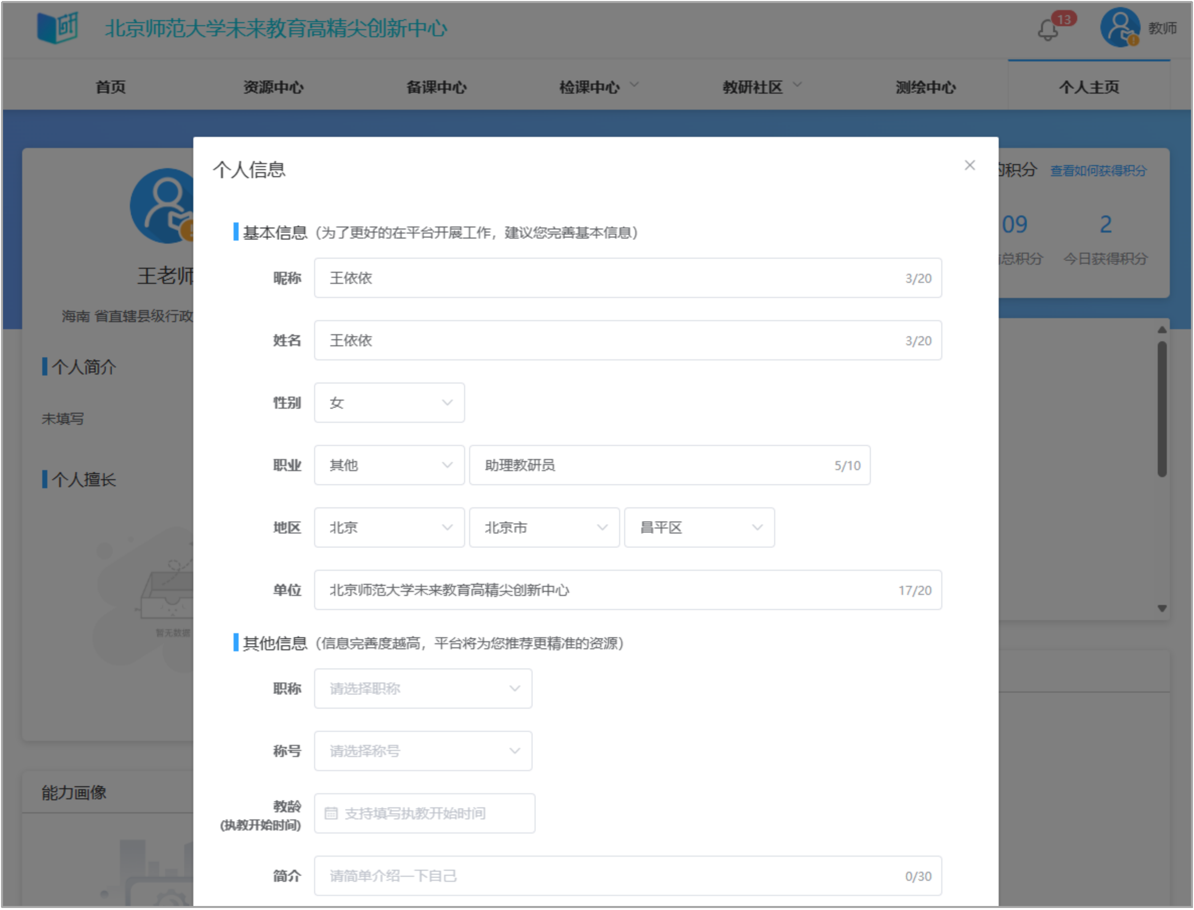 (3)完善个人信息:访问“个人ag凯发旗舰厅主页”,根据个人实际情况如实且完整填写个人信息,此信息将与作品获取信息关联。