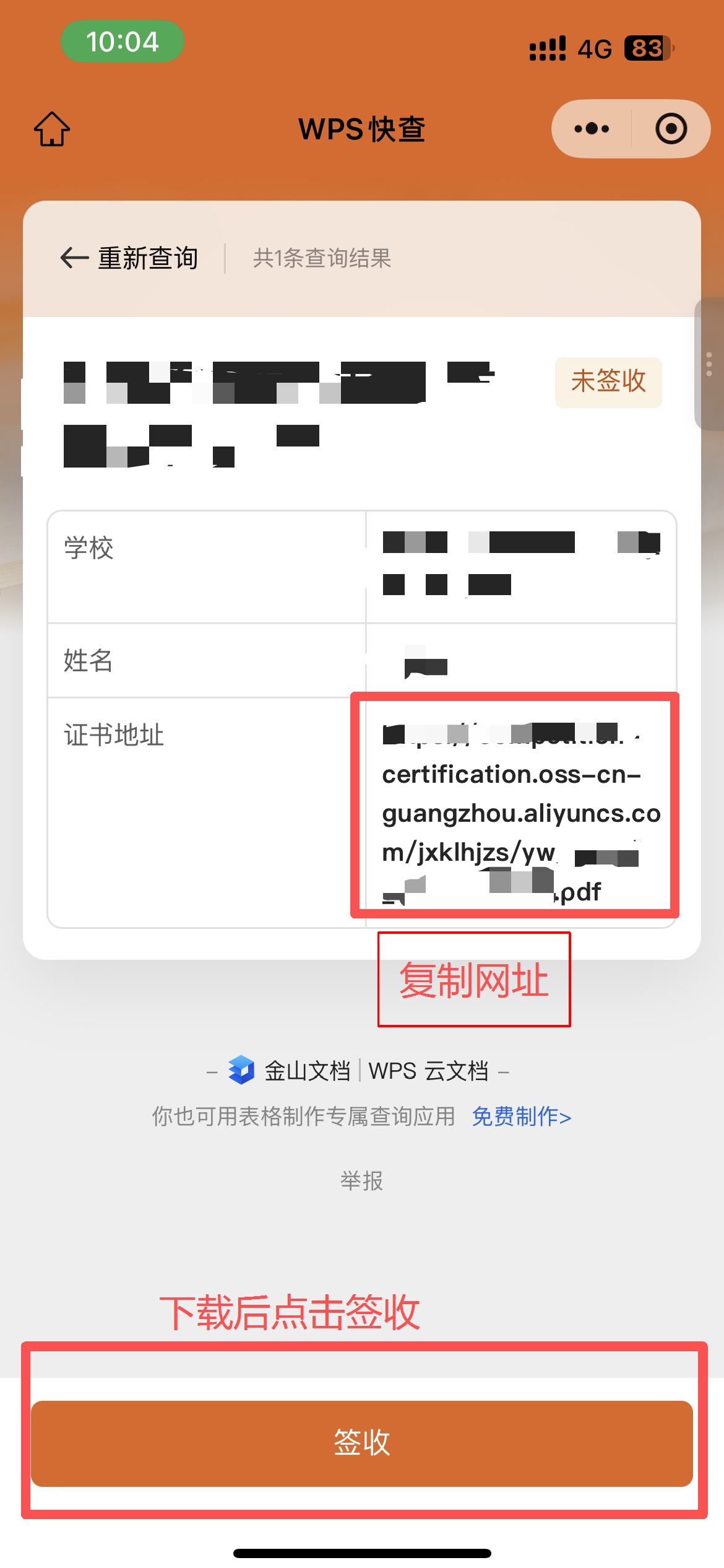 2.查询二维码:教师可通过手机扫描二维码进入查询通道,下载方式同网址查询下载步骤一致,可直接将证书地址复制到手机浏览器或电脑浏览器中进行下载。