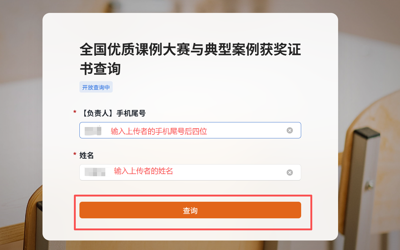 依托科技部重点研发课题“农村地区教师教学能力智能评测与教学精准辅助技术研究”举办的全国优质课例大赛暨典型案例征集活动,获奖名单已经公布,第一批证书已发放完毕(点击查看详情)。部分参赛教师反馈证书信息存在缺失或查询为空等情况,针对这些反馈,我们高度重视,立即组织课题组工作人员展开全面查收与细致整理工作。现已完成相关问题的处理,正式发布第二批证书。请相关人员及时登录指定查询平台,输入准确个人信息进行查询下载。具体操作如下: