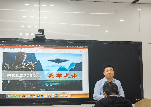 本次活动的一大亮点(拓展活动“未来教育 2050——英雄之旅”)是“中国下一代科学教育青年工作委员会”筹备组策划的别出心裁、意义非凡的活动。2050年是我国实现了第二个百年(2049年)目标后的第一年,《教育元宇宙》作者李骏翼,组织现场老师采用孔子、苏格拉底、马克思、佛陀、达芬奇、弗洛伊德、钱学森、陶行知等人类历史上璀璨明星角色扮演的游戏化方式,巧妙地激发了参与者对未来教育的无限想象和深度思考。大家沉浸在设定的情境中,身心合一,共同描绘出2050年代的教育图景。之后,又以这一未来图景为蓝本,逆向推导教育发展过程,聚焦未来五年的发展趋势。在此基础上,每个人回归到自身在教育领域中的现实角色,重新审视和思考自己的学业或事业规划,从认知层面到实际行动,体现了全方位的赋能。