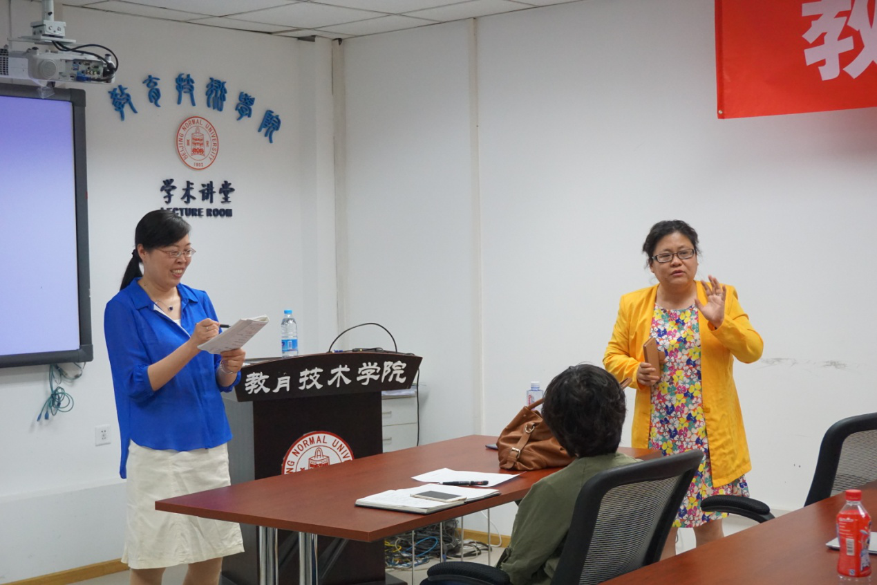 2016年5月11日下午2:00,北京师范大学未来教育高精尖创新中心执行主任余胜泉教授和崔京菁博士在演播楼208会议室分别就“移动时代的教与学”和“移动技术与教学的融合”主题为东城区中小学教师进行了教学培训。