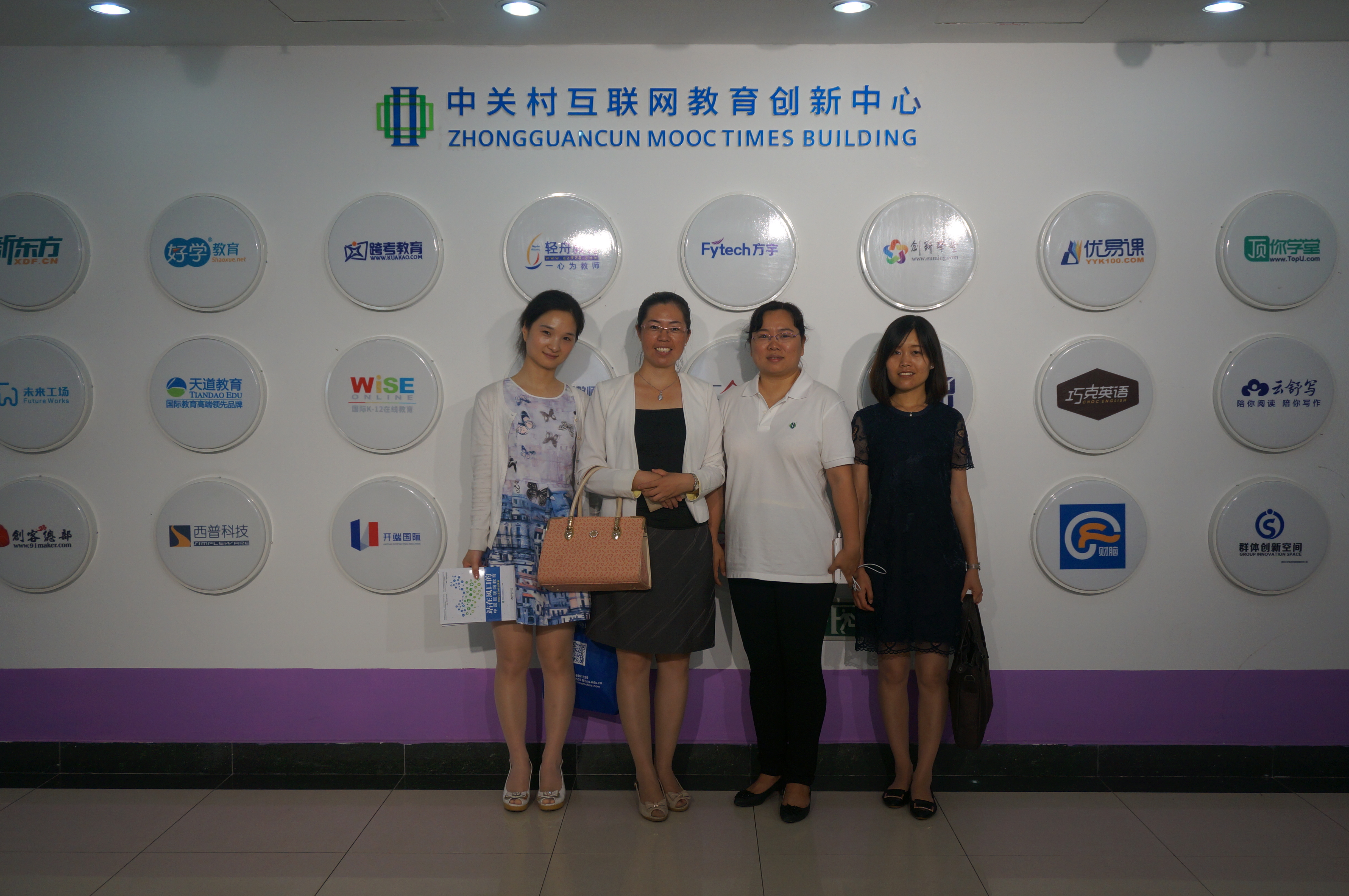 2016年6月16日上午9点,北京师范大学未来教育高精尖创新中心学科教学实验室副主任李晓庆、助理教研员杜玲红、李梦一行三人赴北京市中关村互联网教育创新中心参观交流,北京市互联网教育科技服务有限公司副总经理杨丹,李国丽老师,巧克互动、优易客、老师走起、集思慕课、云舒写等相关负责人共同参加了会议讨论。