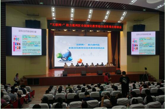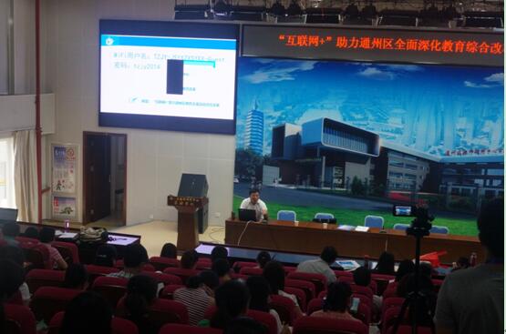 “‘互联网 ’助力通州区全面深化教育综合改革项目”由北京市教委直管,北京师范大学牵头进行教研、教学指导,由通州区教委承担项目执行和推进。2016年9月至2017年2月为项目实施的第一轮周期,此次培训之后会陆续组织学生进行测试、教师随机阅卷、生成详细报告分析、推荐优秀资源和双师服务,助力通州区学生个性表现和扬长发展,帮助教师适应教改提升精准个性化教学能力,为提升通州区的教育品质、实现区域教育全面发展架桥铺路。