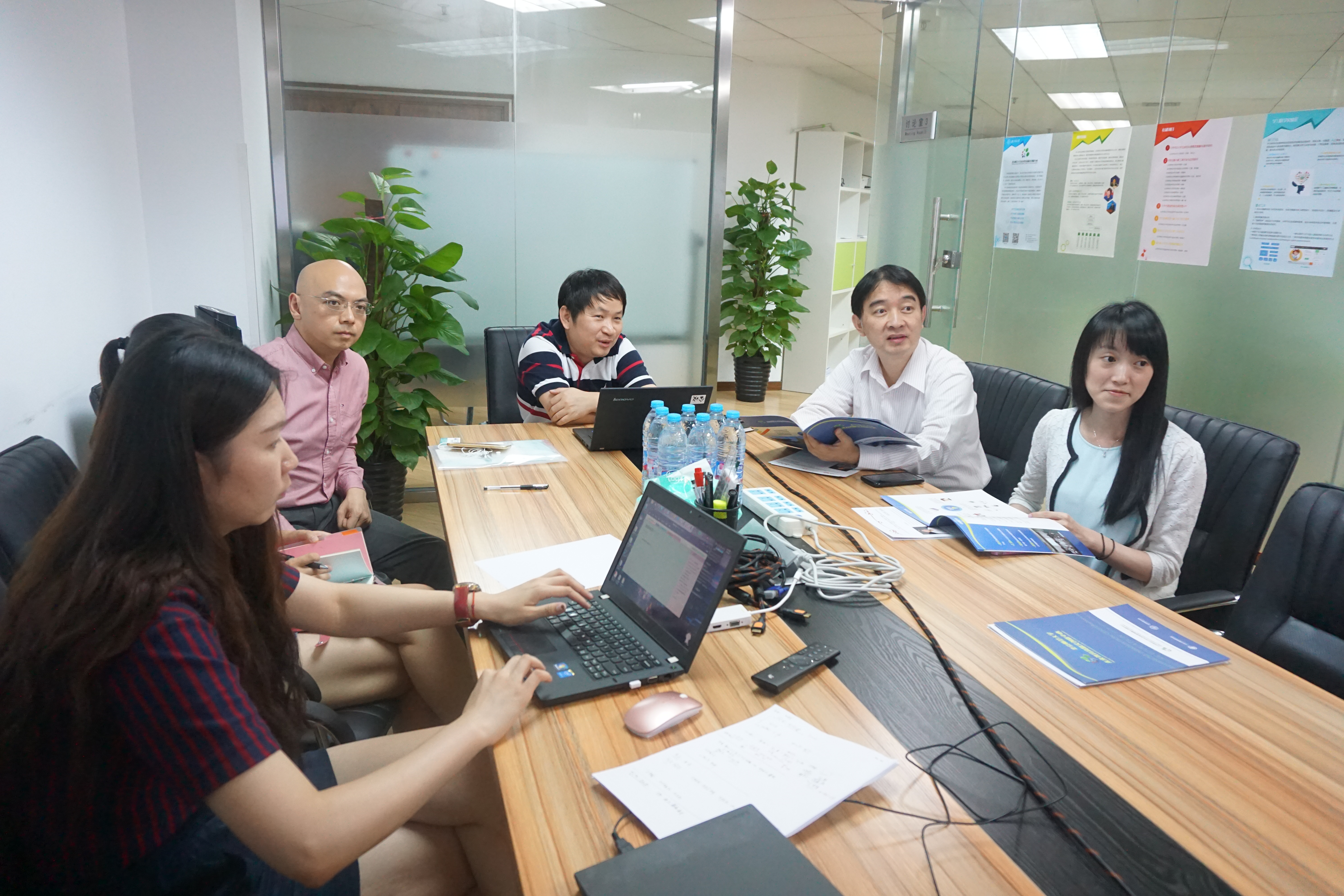 图:黄国祯教授与余胜泉教授和中心工作人员就中心相关研究进行探讨