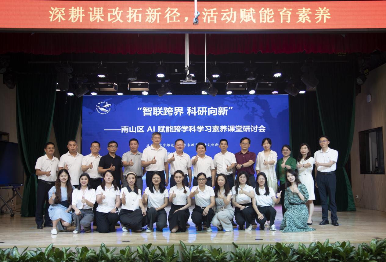 6月12日上午,北师大项目组携手南油小学举办“智联跨界 科研向新”ai赋能跨学科学习素养课堂研讨会,南山区教育局、教科院领导,北师大专家团队,多校教师代表参会。王月红校长在致辞中介绍,学校以ai技术赋能素养课堂,依托跨越式项目推动教育创新。张欣老师在《火烧云》语文课上,借助ai助教指导学生掌握写作手法;肖丽丹老师在《评选吉祥物》数学课上,利用ai生成设计素材,实现数学与文创设计的跨界融合。李丹丽老师作《“三阶跨学塔”——突破与创新》专题汇报,阐释塔基层知识转化、塔身层问题解决、塔顶层成果迁移的模型及实践案例。活动尾声,余胜泉教授作点评与讲座,肯定了学校将国家课程大单元教学与跨学科教学结合的做法,阐述了人工智能对教育的意义、带来的负面影响及科学使用方法,强调要发展学生完备的内部认知网络,平衡内外认知网络,避免认知外包陷阱。本次活动通过课堂观摩、理论研讨、成果展示三维联动,呈现了ai赋能跨学科学习的实践与思考。