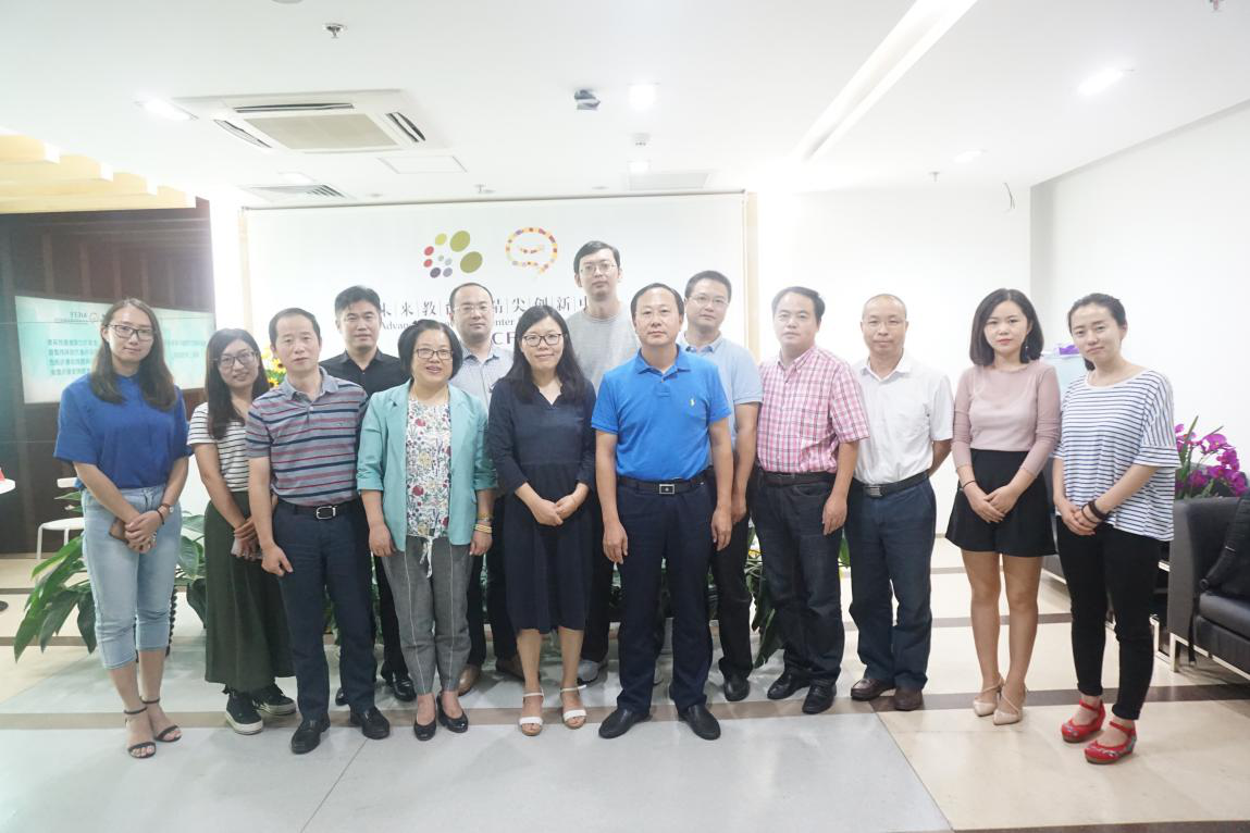 2017年9月14日上午苏州教育局代表团一行十人来访北京师范大学未来教育高精尖创新中心。苏州教育局代表团的成员有教育局副局长高国华、人事与师资处处长徐卫、科技教育与信息处处长赵鸣、科技教育与信息处挂职副处长黄小辉、科技教育与信息处上挂人员张海明、教师发展中心主任唐爱民、电化教育馆馆长顾瑞华、电化教育馆办公室主任吕晓棠、工业园区教育局副局长葛虹、工业园区教育局信息中心主任肖志年。高精尖创新中心融合应用实验室主任陈玲博士、解晓乐老师、刘欢老师等出席了此次会议。