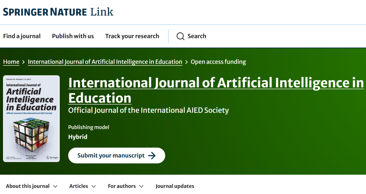图1 《international journal of artificial intelligence in education》由springer nature出版发行