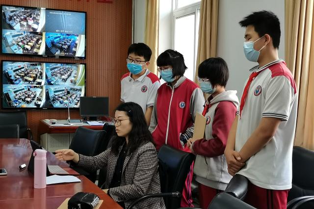 为推进北京师范大学未来教育高精尖创新中心科研成果迅速落地,能够真正在一线教育教学主阵地发挥切实有效的价值,推动以大数据、人工智能为主的新一代技术深入课堂教学改革实践场,基于智能化测评方式为教师开展个性化教与学提供有效参考信息,真正实现信息技术与教育教学的深层次整合,2021年4月28日上午,北师大高精尖中心学习科学实验室崔京菁博士、吴斓博士、刘阳老师,智能平台实验室胡晓波老师以及中心访问学者张天云老师,共赴通州四中开展实地调研,深度探究基于psaa平台(中心自主研发的智能化测试平台)开展个性化智能测评方式对提升初中数学教学质量的实际情况和取得的阶段性效果。通州四中初中数学组成员王志芳老师、张艳老师、刘兴武老师、蔡福宝老师和张艳芳老师共同参与了本次研讨、交流与实验。