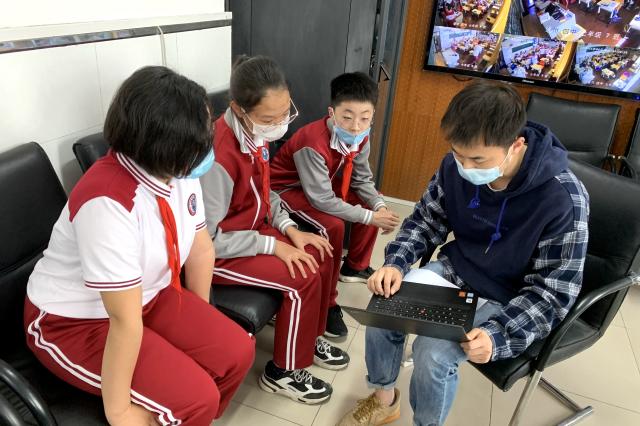 图2 崔博士、吴博士与刘阳老师访谈学生