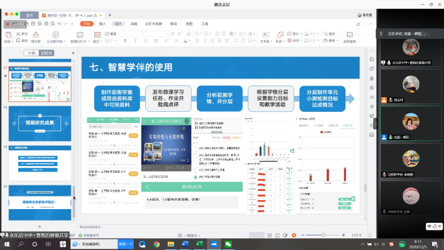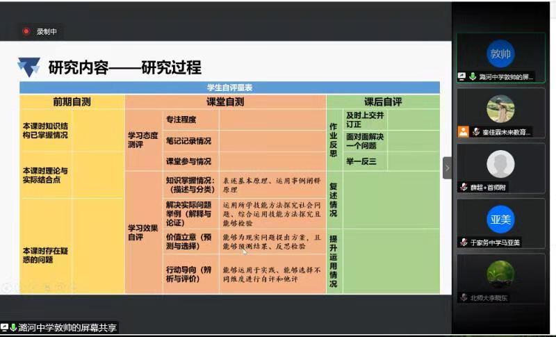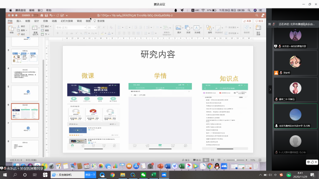 此次开题通过远程在线的方式,子课题负责人从研究目标、研究内容、研究方法、创新点、智慧学伴使用方式等五个方面进行答辩,充分展示了教师对实践教学的深入思考、对研究课题的创新发展。随后,专家针对汇报过程中发现的问题提出意见,对子课题的研究方向进行指导,给予子课题创新点充分的肯定。
