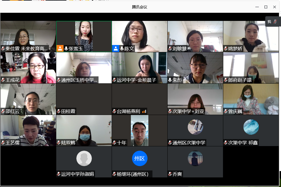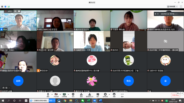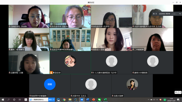 为进一步推动通州区新一代信息技术新型教育模式的形成,完善覆盖义务教育各年级各学科的数字教育资源体系,指导教师充分利用大数据开展线上线下混合式教学,促进教师专业素养发展和通州区教学转型,北京师范大学未来教育高精尖创新中心于2020年10月开放“基于大数据的核心素养发展研究”子课题的申请,并于11月末至12月初组织通州区一线教师参与本年度子课题开题答辩,邀请包括学科首席在内的13名专家进行开题指导,涵盖语文、数学、英语、历史、道德与法治/思想政治、地理、物理、生物、化学、体育、心理等11个学科。此次活动为教师搭建了一个交流与合作的平台,使一线教师获得更多的成长空间与发展机会,提升教师大数据应用素养,引导教师由教学型向研究型转变,为发展研究型教师人才提供了依据和借鉴。