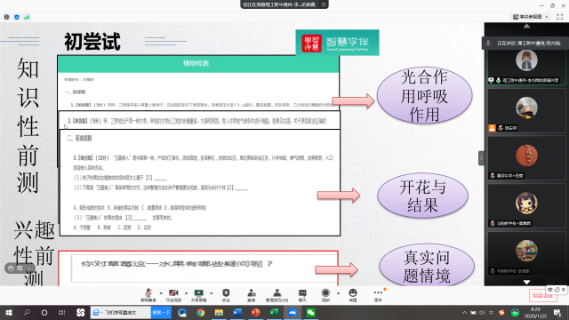 心理学科专家对中学生心理问题做出了清晰的解释,充分肯定子课题涉及生涯教育、学习动机、掌控情绪、家校协同育人等方向,对子课题中教师科学高效地融合心理教学与智慧学伴平台给予表扬,与此同时也对文献整理、研究问题、核心概念等进行指导建议。