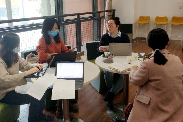 随着子课题开放申请,为帮助教师更好地理解课题的宗旨,提炼教育教学中实际关键问题,梳理课题研究思路,强化在实际教育教学中的数据意识,2020年11月11日,北师大高精尖中心学习科学实验室崔京菁博士、吴斓博士和刘阳老师深入通州区学校学科教研组,与开展申报子课题研究的学科教师进行了课题研究方面的探讨和交流。