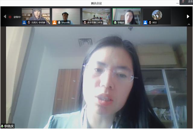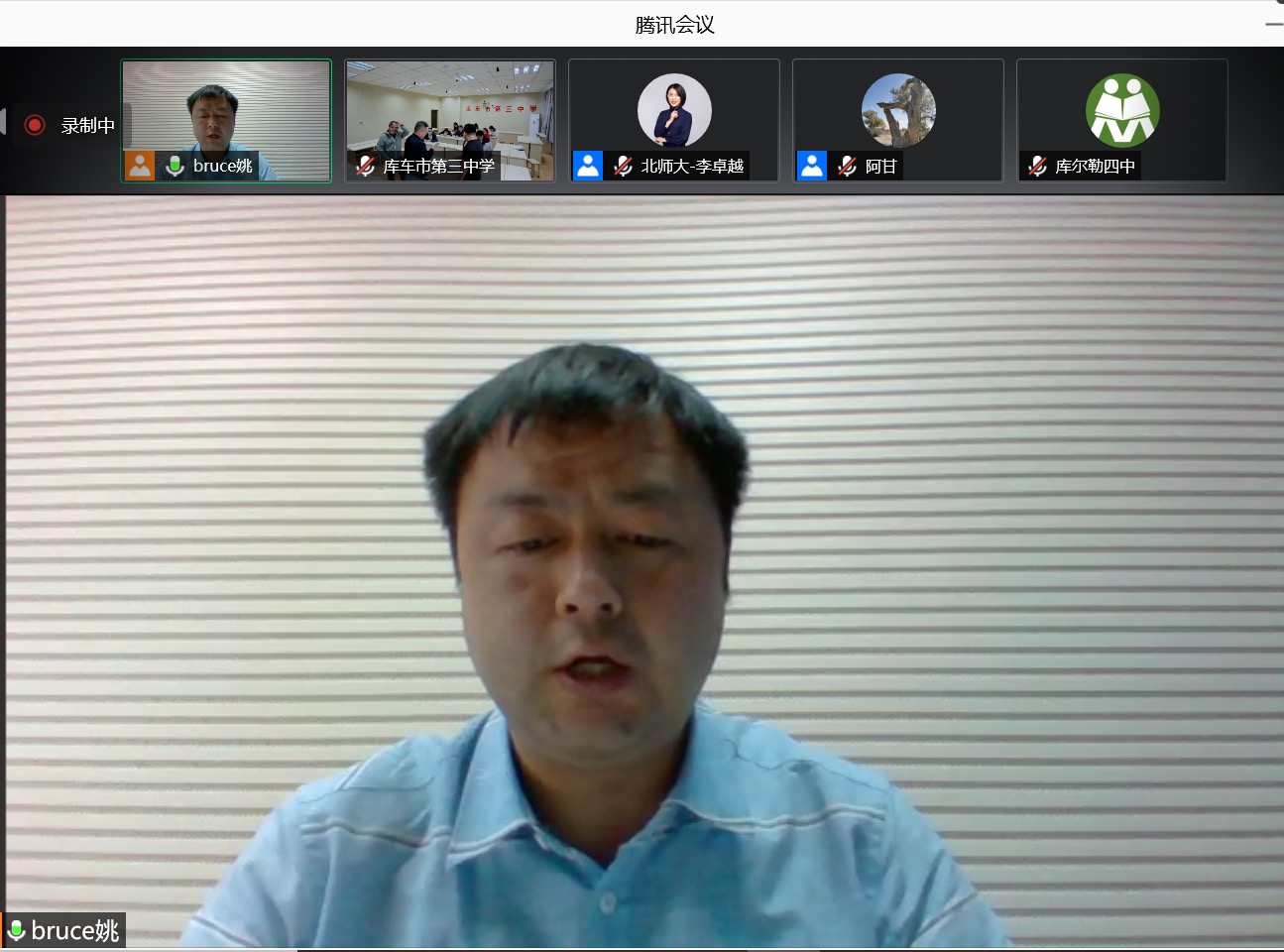 本次活动通过腾讯会议形式开展,新疆教科院副院长宋红、北师大高精尖中心学科教育实验室常务主任李晓庆、学习科学实验室副主任崔京菁、融合应用实验室副主任郭晓珊及新疆教科院课题团队、各实验校课题负责人、技术人员等近百人参与会议,会议由新疆教科院教师信息资源中心负责人姚俊主任主持。
